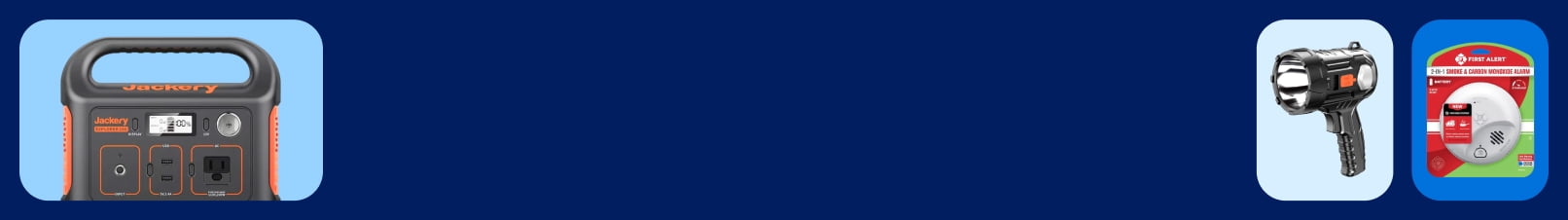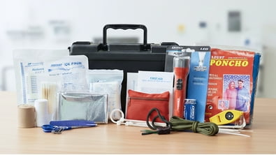 Sets including ice pads, first aid kits, flashlights & ponchos.