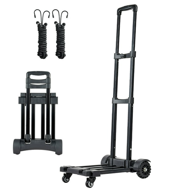 KFFKFF Folding Hand Truck, 290 lbs Capacity, Compact Luggage Cart with 4 Wheels, 2 Elastic Straps & Adjustable Base, Versatile Dolly for Travel, Office, and Moving, Black